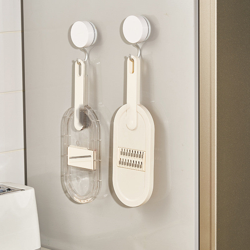 Our vegetable chopper features a convenient bottom container that not only catches the freshly cut food but also serves as a space-saving solution. No more cluttered countertops or messy cutting boards. The built-in cutting lid allows you to effortlessly cut food directly into the spacious container, ensuring nothing slides off during the slicing process.