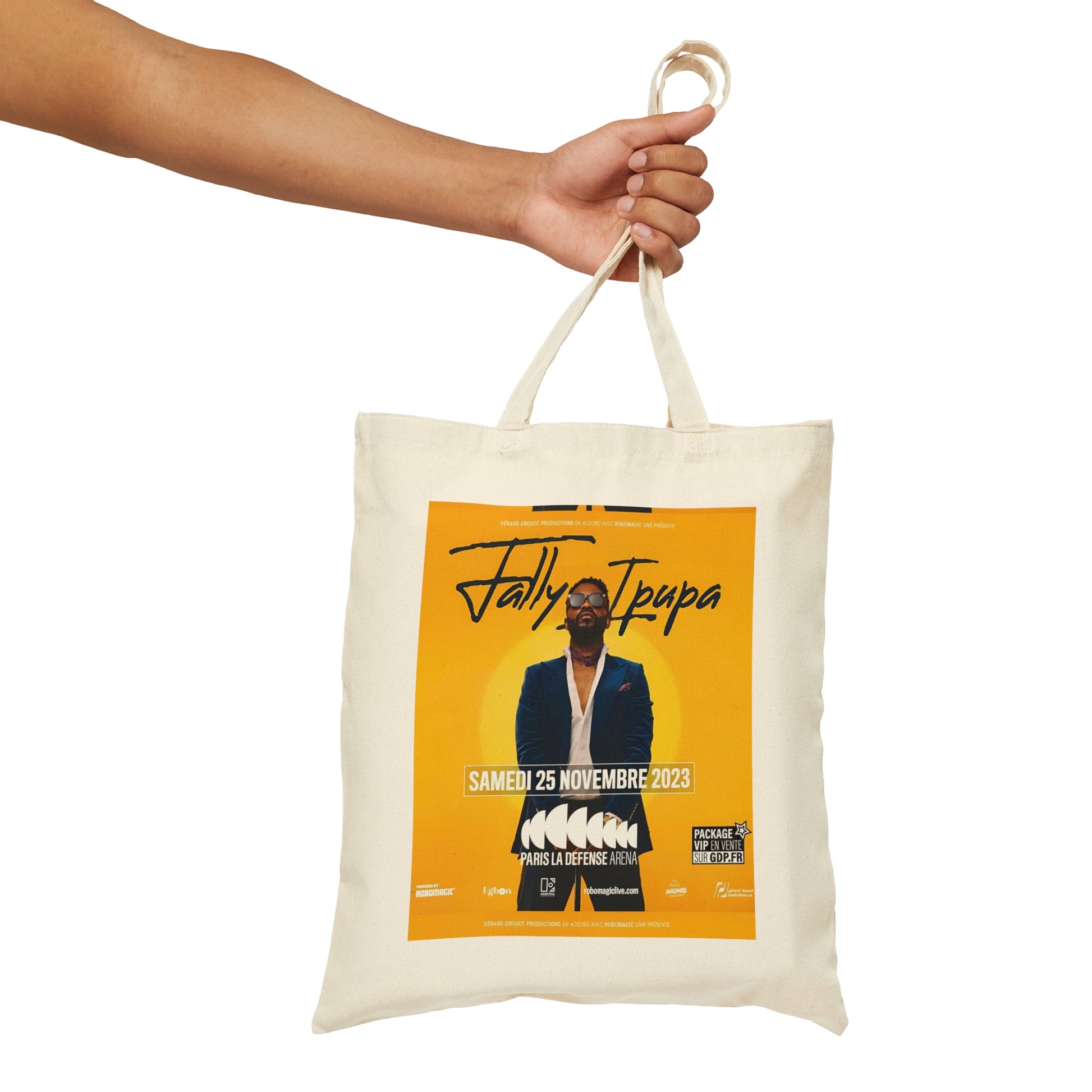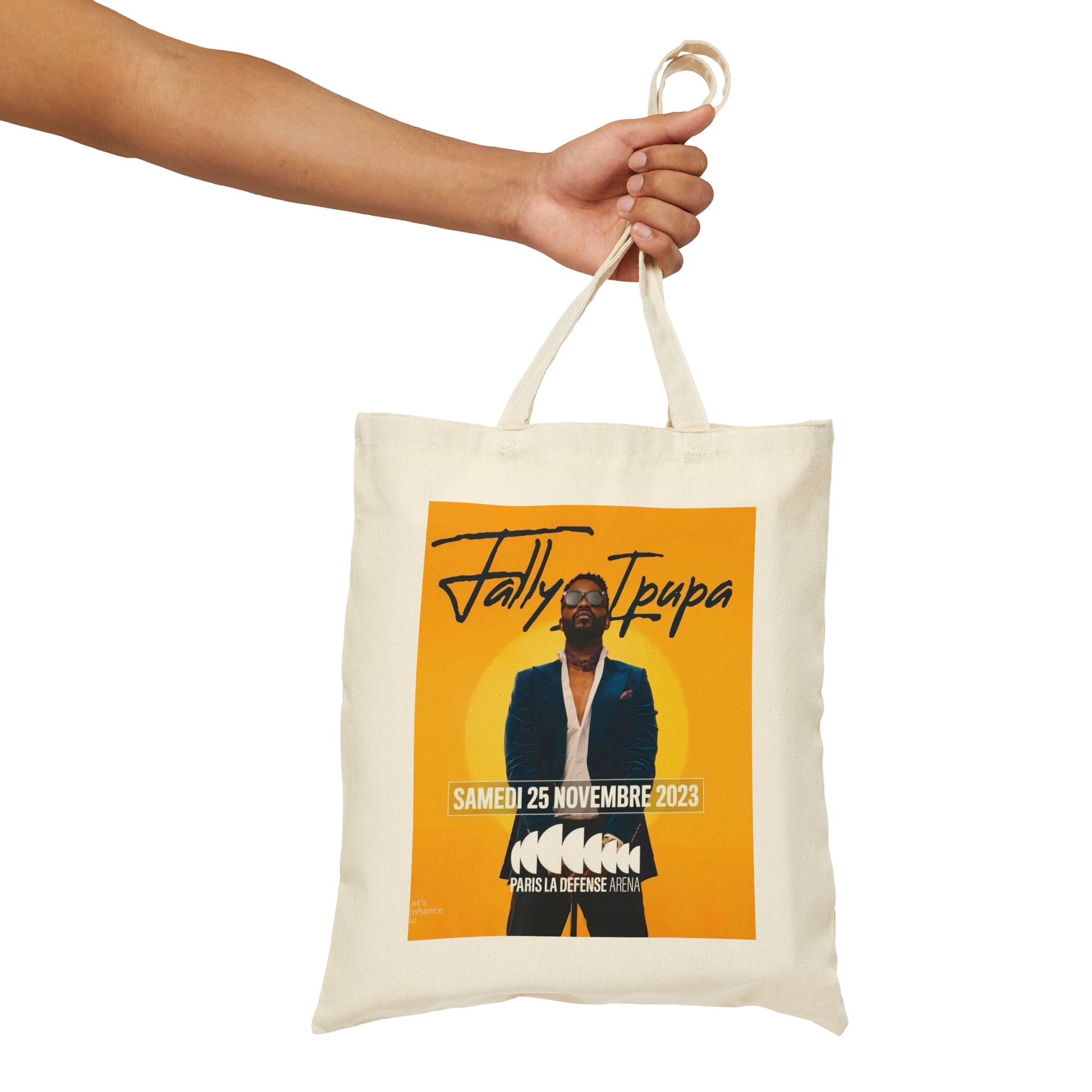 [ENGLISH] Fally Ipupa's Mega concert on 25th November 2023 at Paris U-ARENA, show your unwavering support for this event with this exclusive 100% cotton bag. Designed to enhance your concert experience, it comes in a perfect size of 15" x 16", ideal for everyday wear. The durable canvas material not only showcases vibrant colors but will also stand the test of time. Equipped with 20" handles made from the same canvas, it ensures easy carrying, even with all your concert essentials.