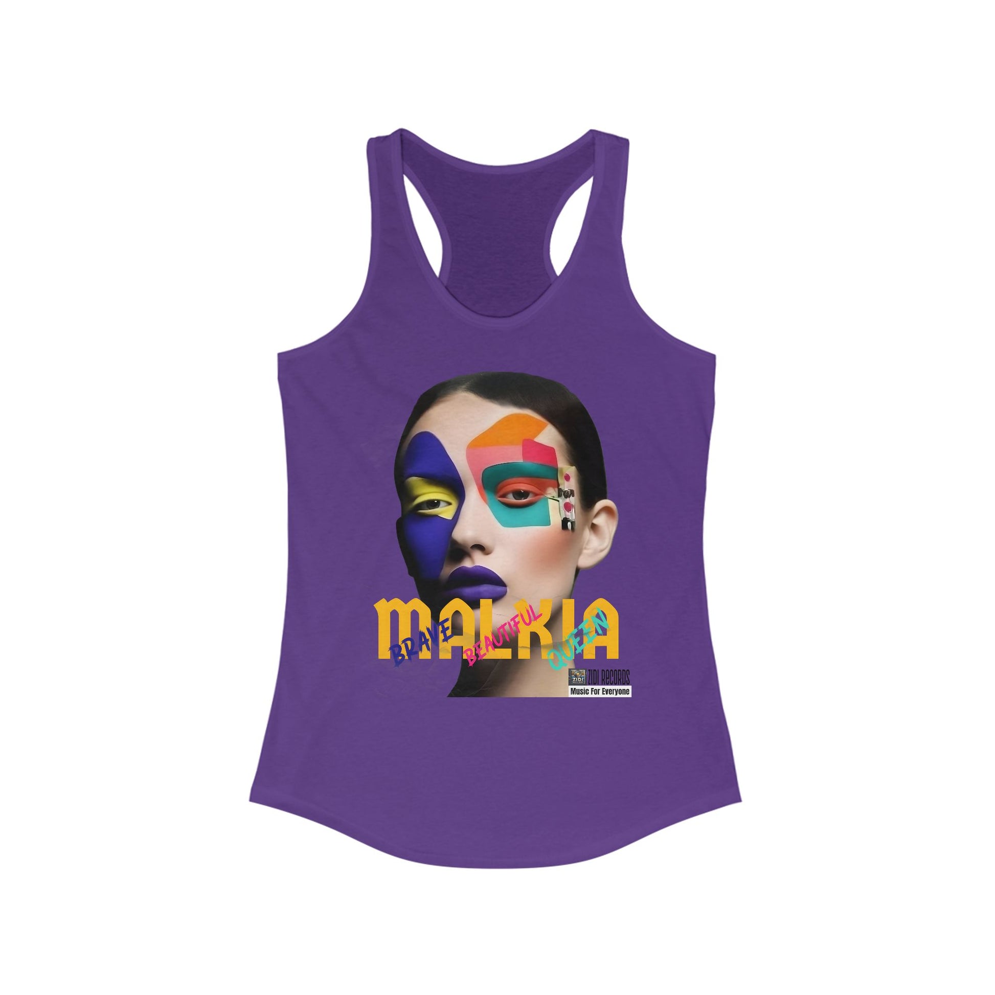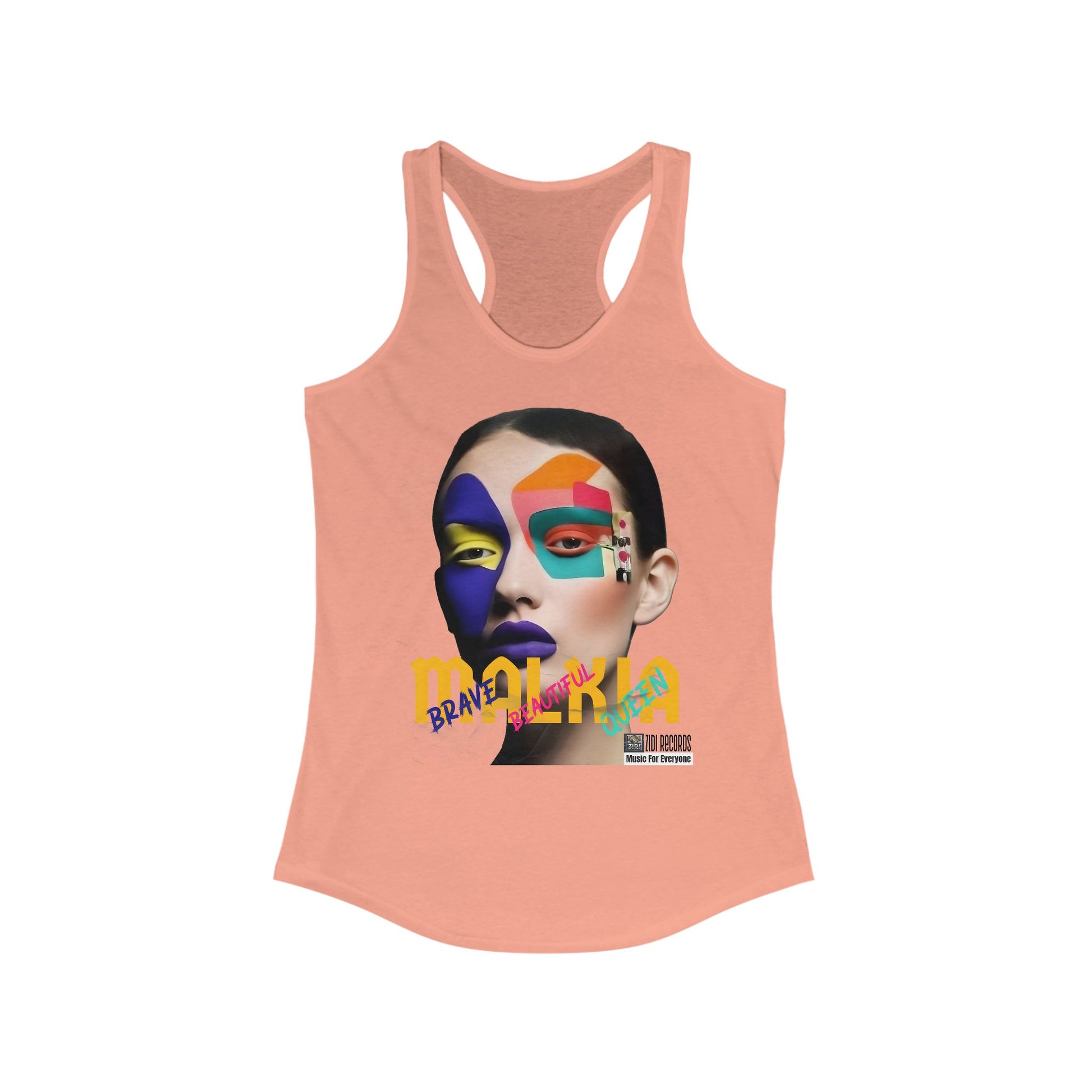 Empowering and stylish, the MALKIA - Brave, Beautiful, Queen Women's Ideal Racerback Tank is perfect for confident and strong women. This slim fit tank-top is lightweight and perfect for an active lifestyle. It features a high-quality print and a scooped neckline for a sporty touch. Ideal for queens who want to embrace their inner strength and beauty, this tank is relevant for celebrations of empowerment and self-love.